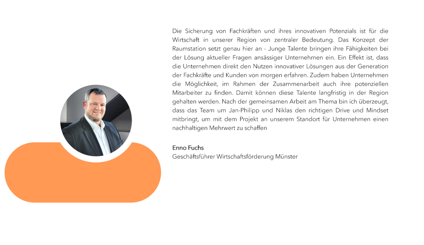 Die Raumstation ist Anlaufstelle und Initiative für aufstrebende, zukunftsorientierte Studierende aller Fachrichtungen, die einen Impact zu einer nachhaltigen wirtschaftlichen und gesellschaftlichen Entwicklung in Münster leisten wollen.